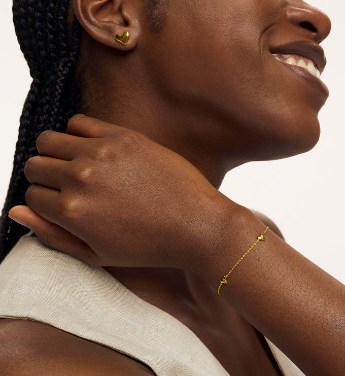 Tiny hearts, bold elegance. The Amora Hearts Bracelet features three delicately placed heart-shaped charms, each inspired by nature’s heart-shaped pebbles and set in 18K gold vermeil.