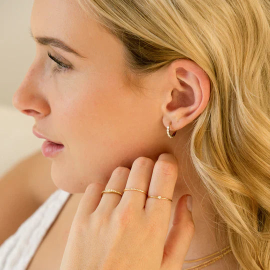 Dainty yet dazzling, the Halo Huggie Hoops are your go-to accessory for effortless elegance. Crafted in 14K gold vermeil or sterling silver, these lightweight 12mm hoops with CZ stones offer all-day comfort. Their sleek, minimalist design makes them perfect for layering or wearing solo to add a touch of sophistication. Hypoallergenic and shower-safe, these hoops will boost your confidence, whether you’re dressing up or going for a casual look. Safe for sensitive skin, these hoops come as a pair and are perfect for any occasion.